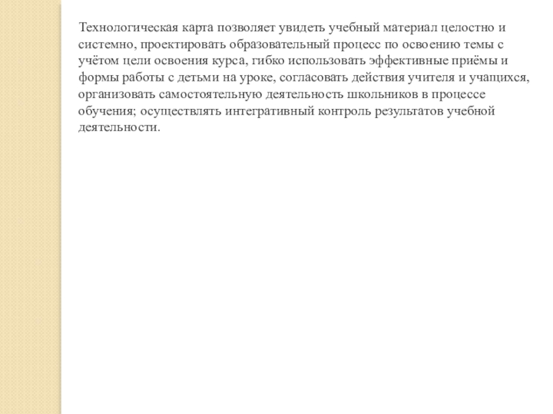 Слайд 32Технологическая карта позволяет увидеть учебный материал целостно и системно, проектировать образовательный
