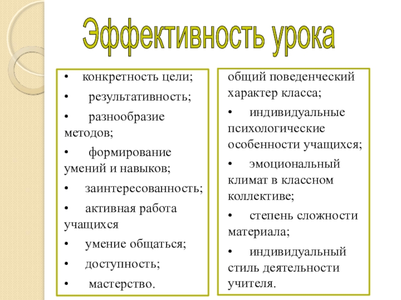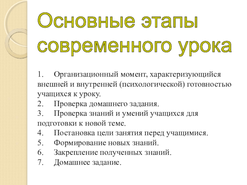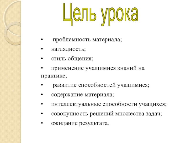 чёткая постановка перед учащимися темы, учебной цели и конкретных заданий урока;