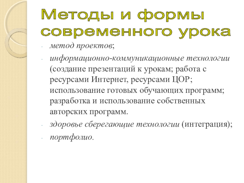 информационно-коммуникационные технологии (создание презентаций к урокам; работа с ресурсами Интернет,