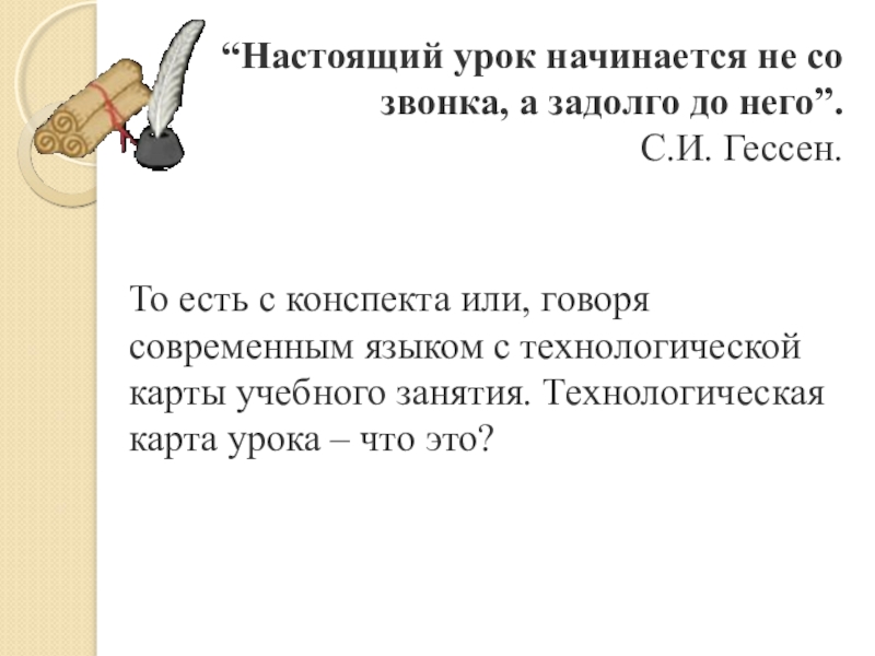 Слайд 27“Настоящий урок начинается не со звонка, а задолго до него”.