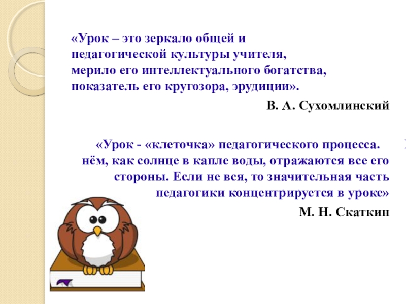 «Урок - «клеточка» педагогического процесса. В нём, как солнце в капле воды, отражаются все его стороны. Если не вся, то значительная часть педагогики концентрируется в уроке»