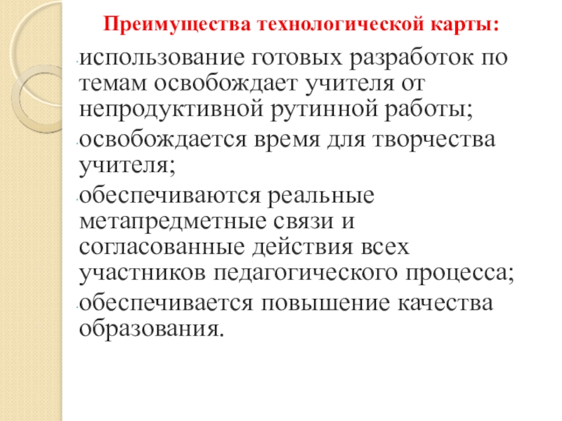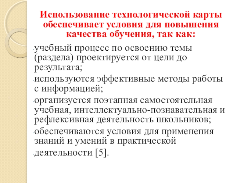 Слайд 35Использование технологической карты обеспечивает условия для повышения качества обучения, так как: