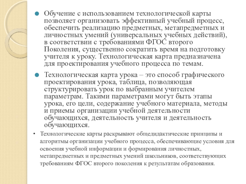 Слайд 28Технологическая карта в дидактическом контексте представляет проект учебного процесса, в котором