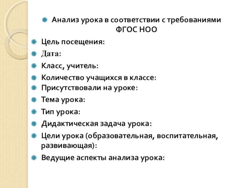 Слайд 37Анализ урока в соответствии с требованиями ФГОС НОО
