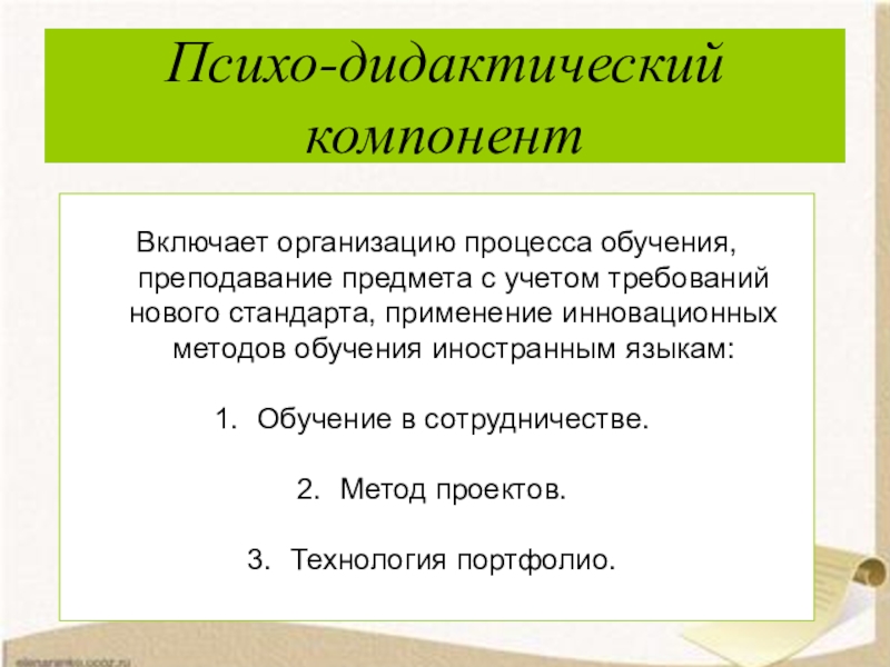 Слайд 10Психо-дидактический компонент