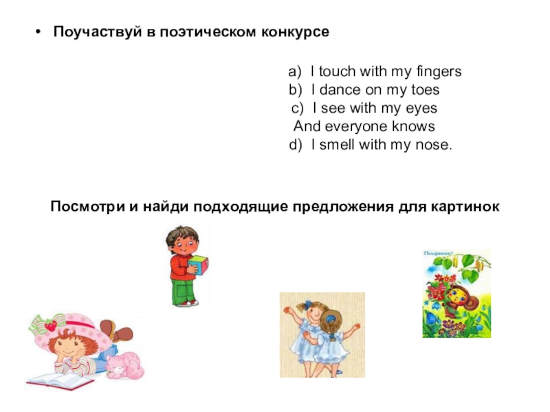 Посмотри и найди подходящие предложения для картинок