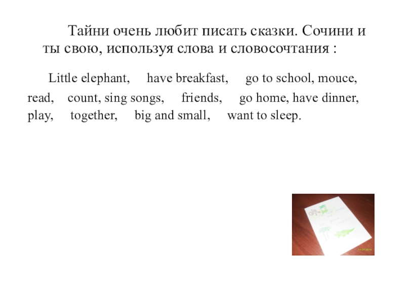 Слайд 18 Тайни очень любит писать сказки. Сочини и