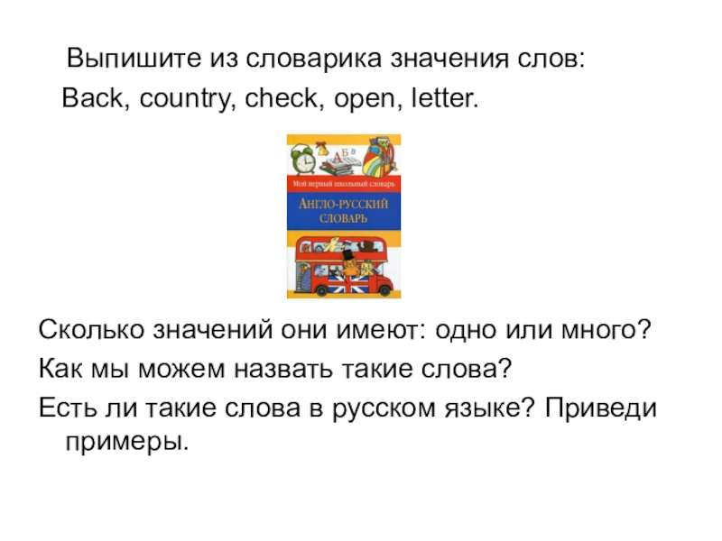 Слайд 16 Выпишите из словарика значения слов: