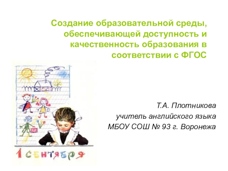 Создание образовательной среды, обеспечивающей доступность и качественность образования в соответствии с