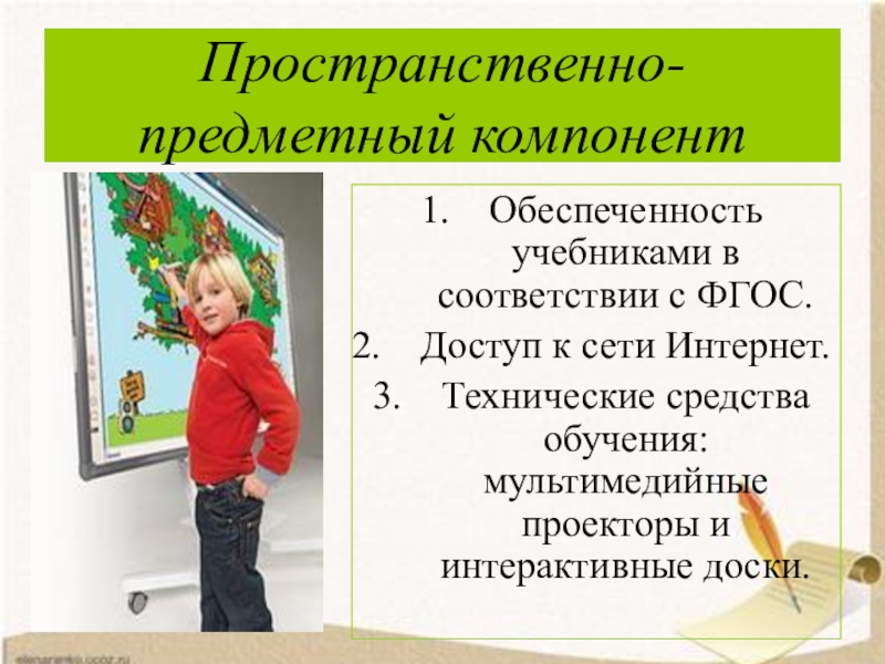 Слайд 4Пространственно-предметный компонент