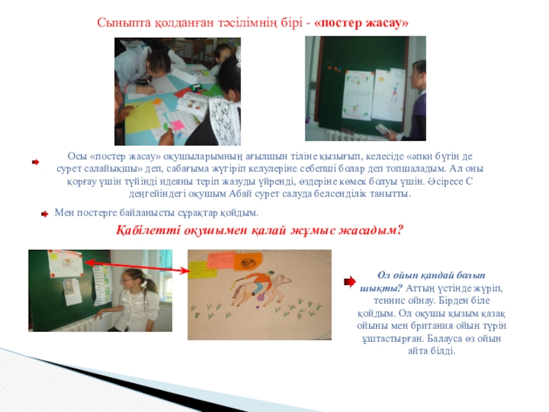 Ол ойын қандай болып шықты? Аттың үстінде жүріп, теннис ойнау. Бірден біле қойдым. Ол оқушы қызым қазақ ойыны мен британия ойын түрін ұштастырған. Балауса өз ойын айта білді.