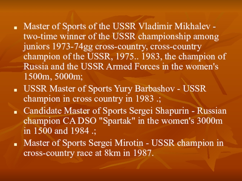 Master of Sports Sergei Mirotin - USSR champion in cross-country race at 8km in 1987.