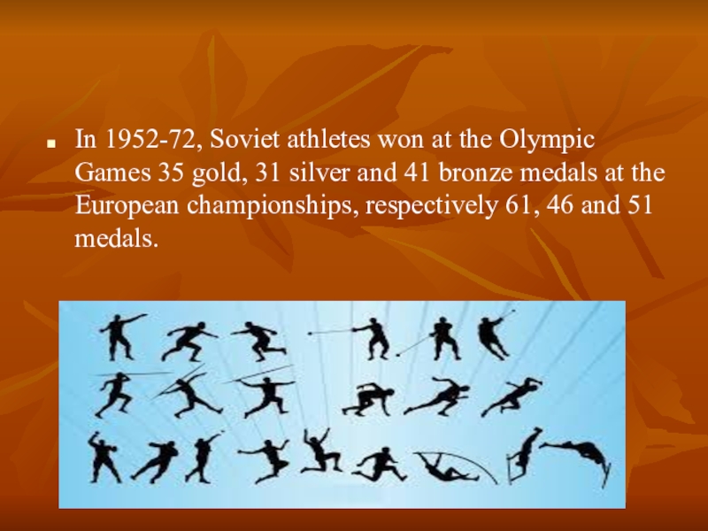 In 1952-72, Soviet athletes won at the Olympic Games 35 gold,