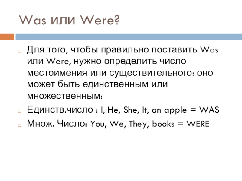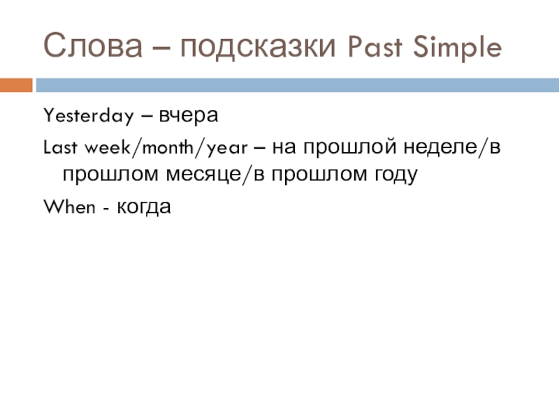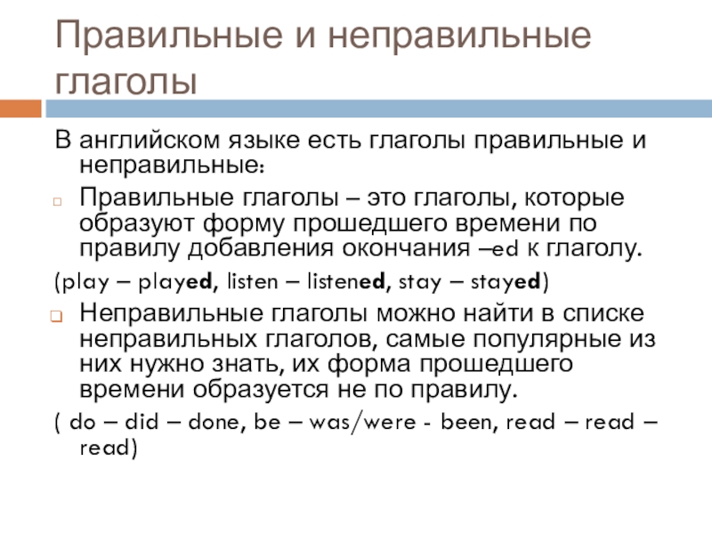 V2 – глагол, вторая форма (если неправильный глаг., то в словаре, если правильный глаг., то добавляем окончание –ed)