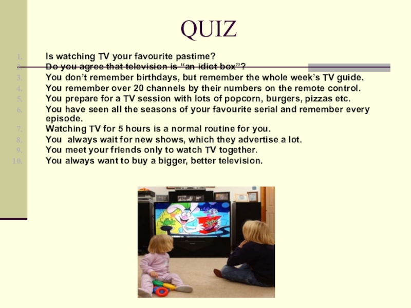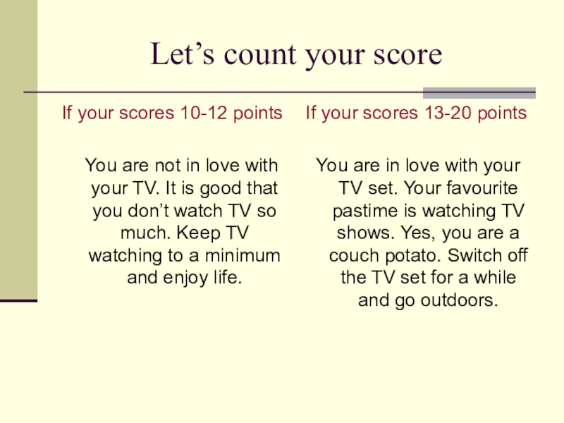 You are in love with your TV set. Your favourite pastime is watching TV shows. Yes, you are a couch potato. Switch off the TV set for a while and go outdoors.