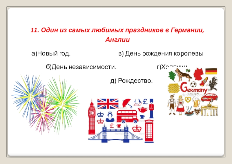 11. Один из самых любимых праздников в Германии, Англии а)Новый год.