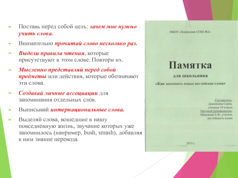 Слайд 17Поставь перед собой цель: зачем мне нужно учить слова.