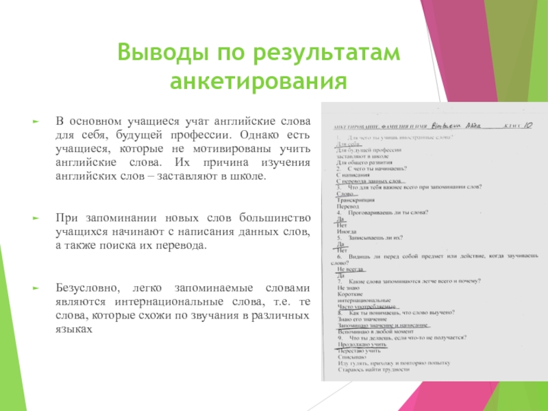 будущей профессии. Однако есть учащиеся, которые не мотивированы учить английские слова. Их причина изучения английских слов – заставляют в школе.