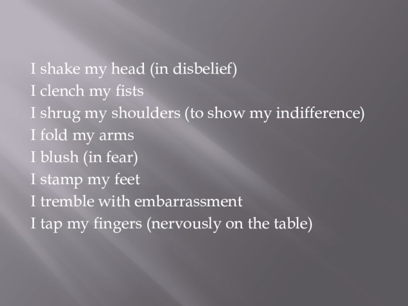 I shake my head (in disbelief)I clench my fistsI shrug my shoulders (to show my indifference)I fold