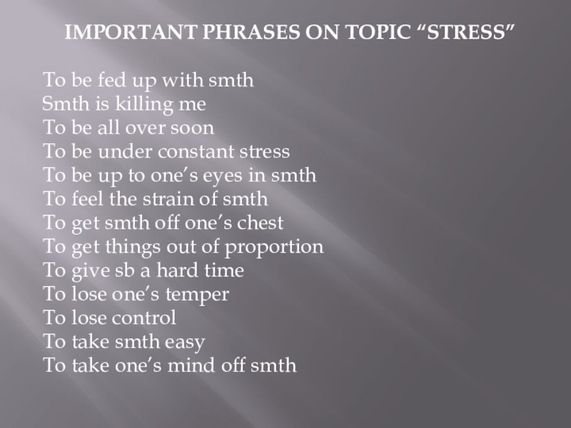 Слайд 6IMPORTANT PHRASES ON TOPIC “STRESS”