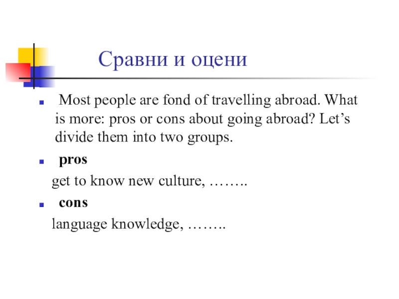 of travelling abroad. What is more: pros or cons about going abroad? Let’s divide them into two groups.