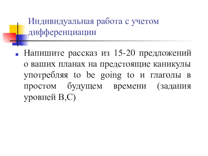 планах на предстоящие каникулы употребляя to be going to и глаголы в простом будущем времени (задания уровней В,С)