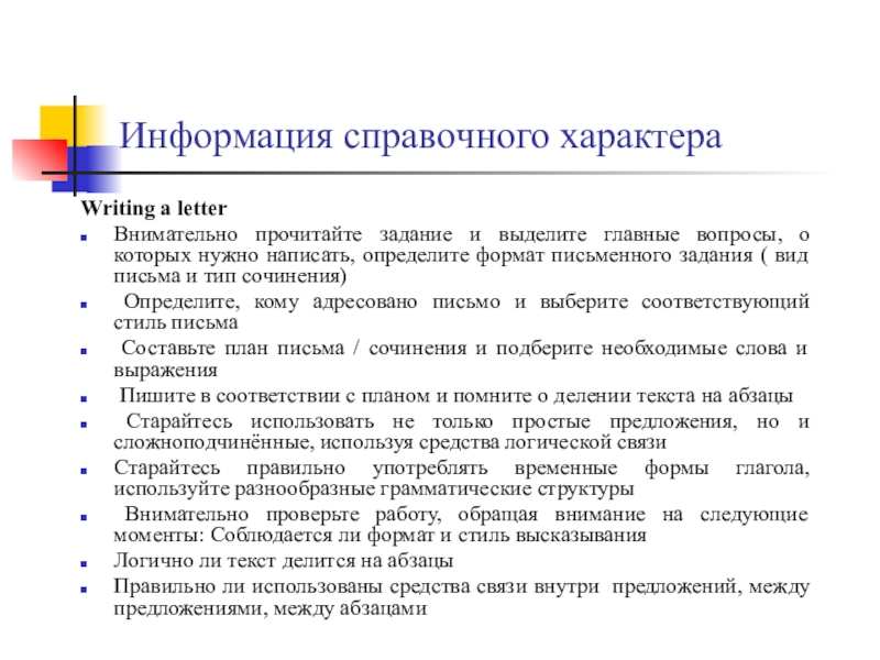 о которых нужно написать, определите формат письменного задания ( вид письма и тип сочинения)