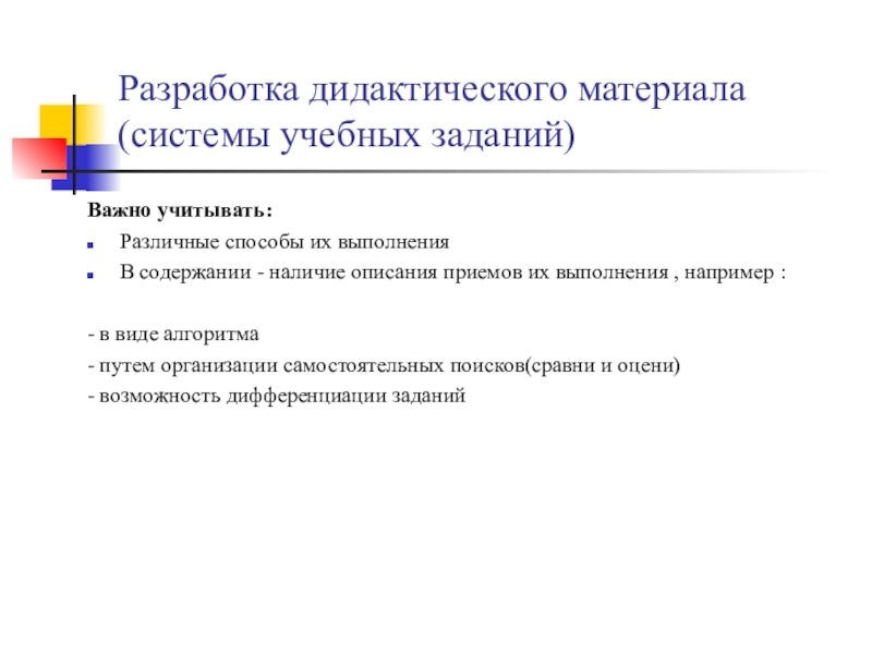 Слайд 9Разработка дидактического материала(системы учебных заданий)