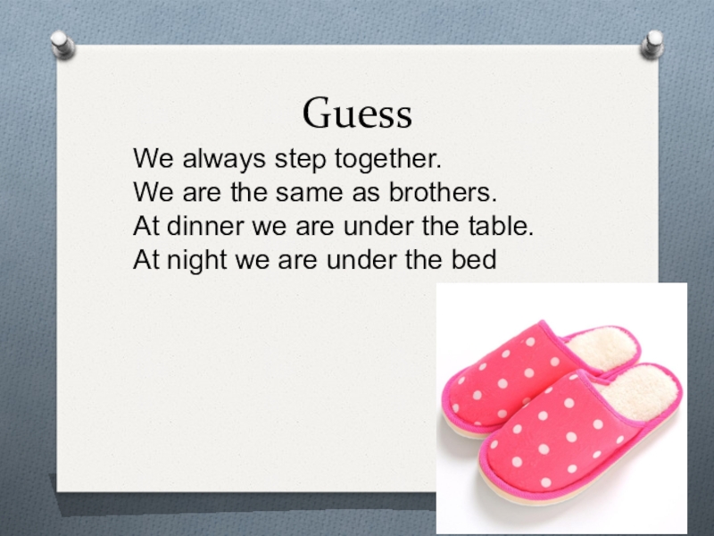 GuessWe always step together. We are the same as brothers. At dinner we are under the table.