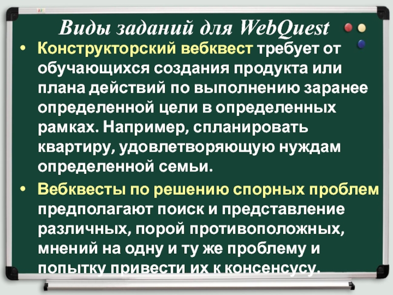 Вебквесты по решению спорных проблем предполагают поиск и представление различных, порой противоположных, мнений на одну и ту же проблему и попытку привести их к консенсусу.