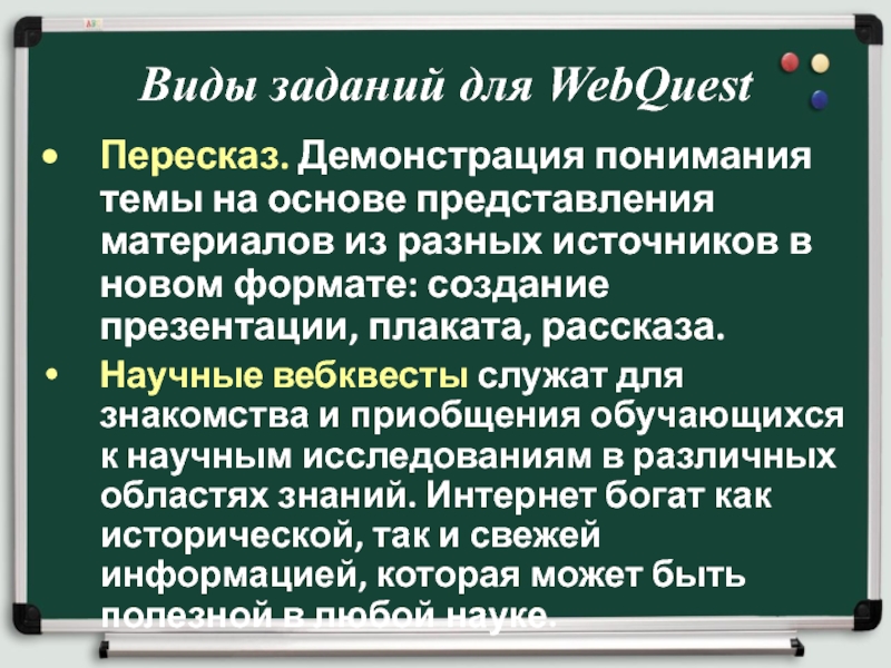 Слайд 4Виды заданий для WebQuest