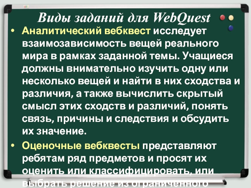 Оценочные вебквесты представляют ребятам ряд предметов и просят их оценить или классифицировать, или выбрать решение из ограниченного списка.