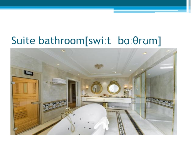 Слайд 9Suite bathroom[swiːt ˈbɑːθrʊm]
