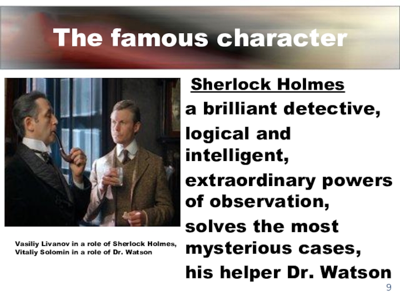 Vasiliy Livanov in a role of Sherlock Holmes, Vitaliy Solomin in a role of Dr. Watson