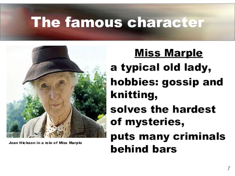 Joan Hickson in a role of Miss Marple