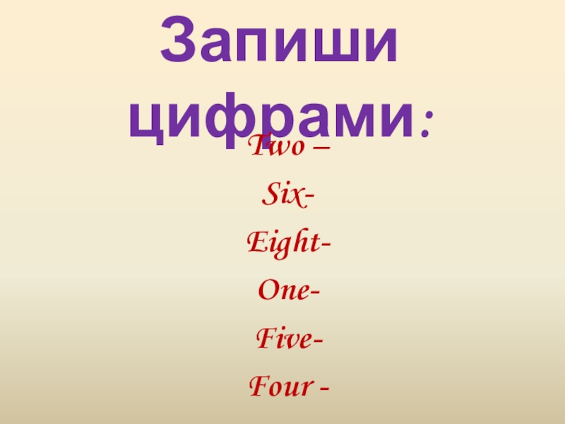 Запиши цифрами:Two – Six-Eight-One-Five- Four -