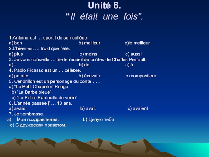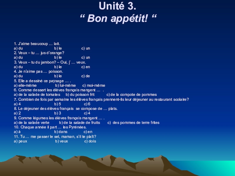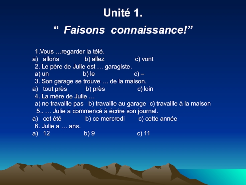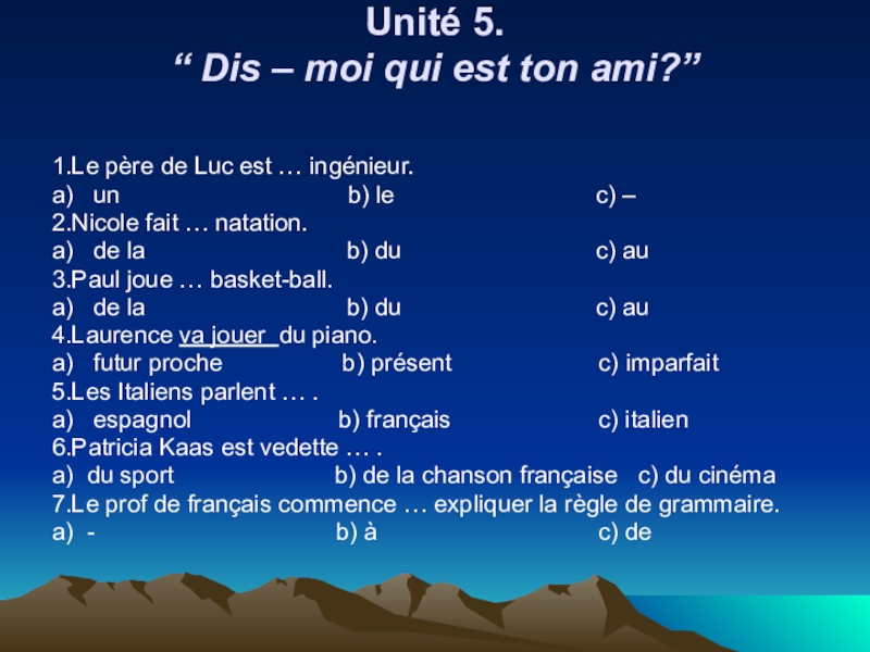 a) l’année passée b) l’année prochaine c) la semaine passée