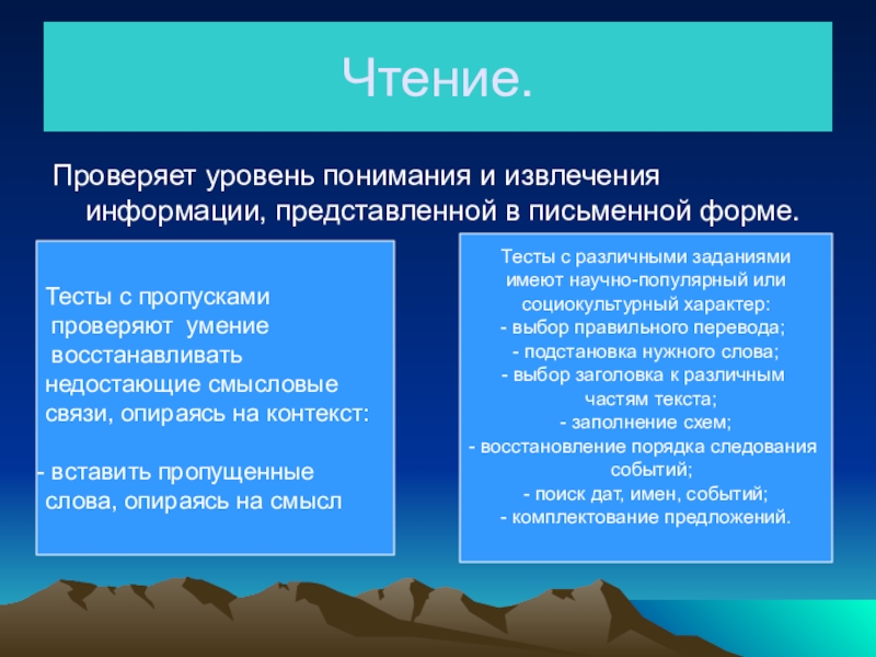 Проверяет уровень понимания и извлечения информации, представленной в письменной форме.
