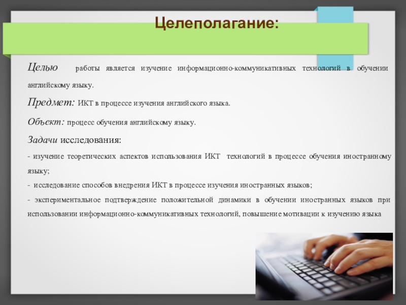 Целью работы является изучение информационно-коммуникативных технологий в обучении английскому языку.