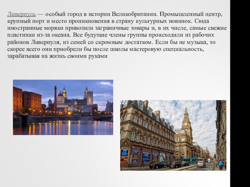 Слайд 3Ливерпуль — особый город в истории Великобритании. Промышленный центр, крупный порт и