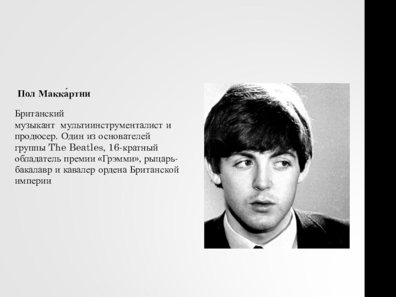 Британский музыкант мультиинструменталист и продюсер. Один из основателей группы The Beatles,