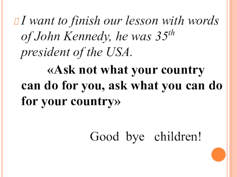 Слайд 16I want to finish our lesson with words of John Kennedy,