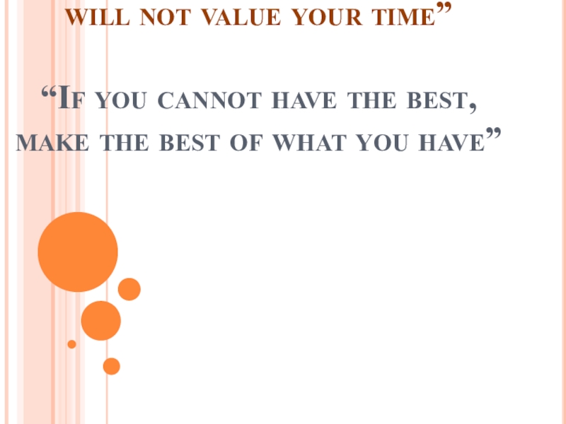 “Until you value yourself, you will not value your time” “If you cannot have the best, make the best of what you have”