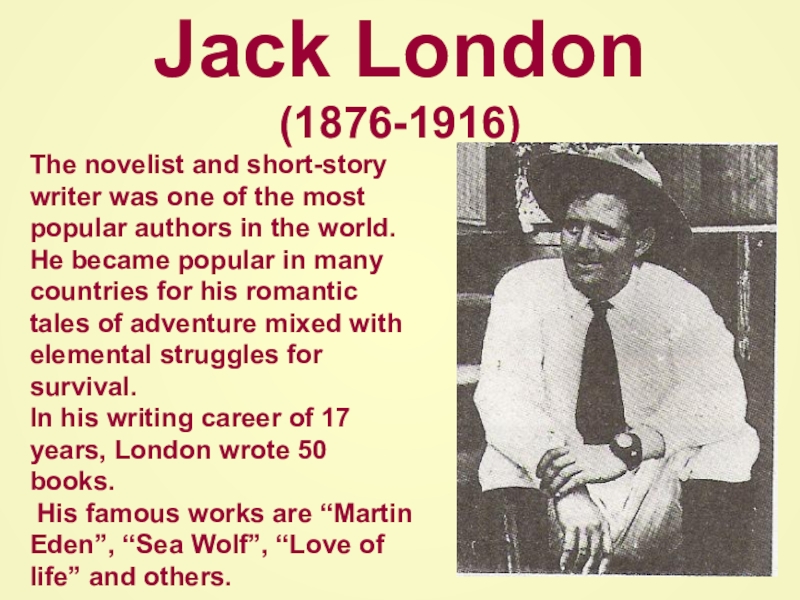 His famous works are “Martin Eden”, “Sea Wolf”, “Love of life” and others.