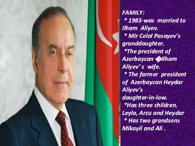 *The prezident of Azerbaycan �Ilham Aliyev’ s wife.