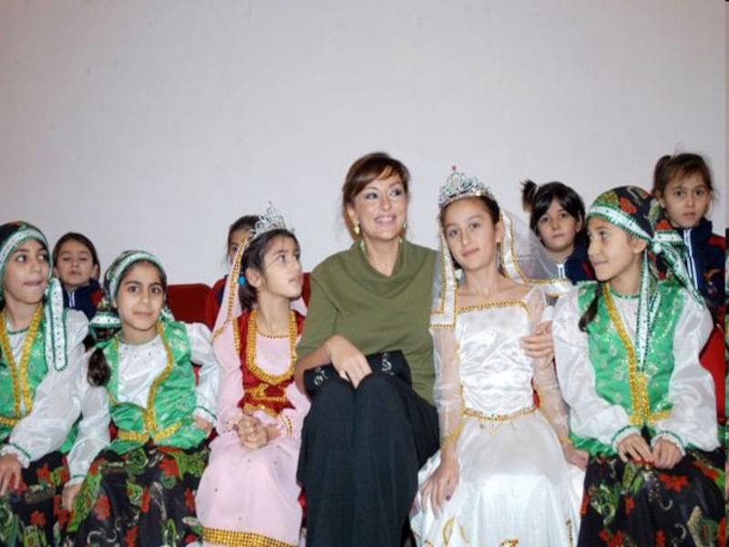 address the problems of children and support the comprehensive upbringing and education of younger generation. Her commitment and charitable work in this domain include construction of hundreds of new schools, hospitals, clinics, musical lyceums, renovation of orphanages in different spots of Azerbaijan. Thalassemia Centre with free of cost treatment was built in the capital of Azerbaijan in 2007 and the actions, such as donating insulin pens to children with diabetes as well as blood donation actions are realized by the Foundation.