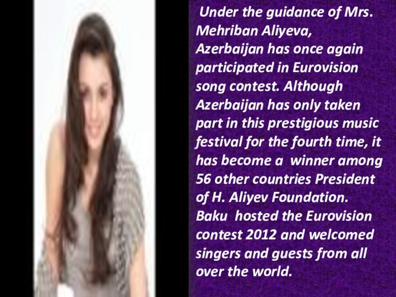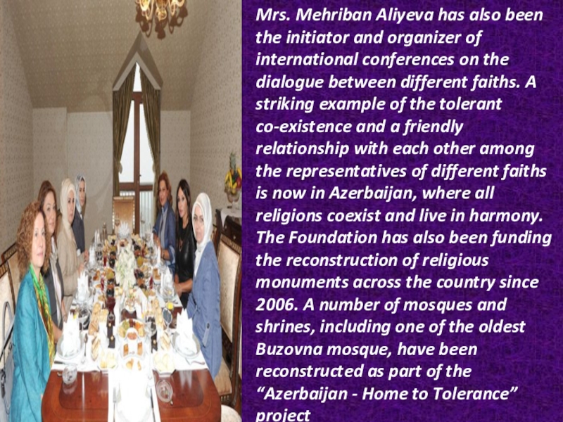 Слайд 25 Under the guidance of Mrs. Mehriban Aliyeva, Azerbaijan has once