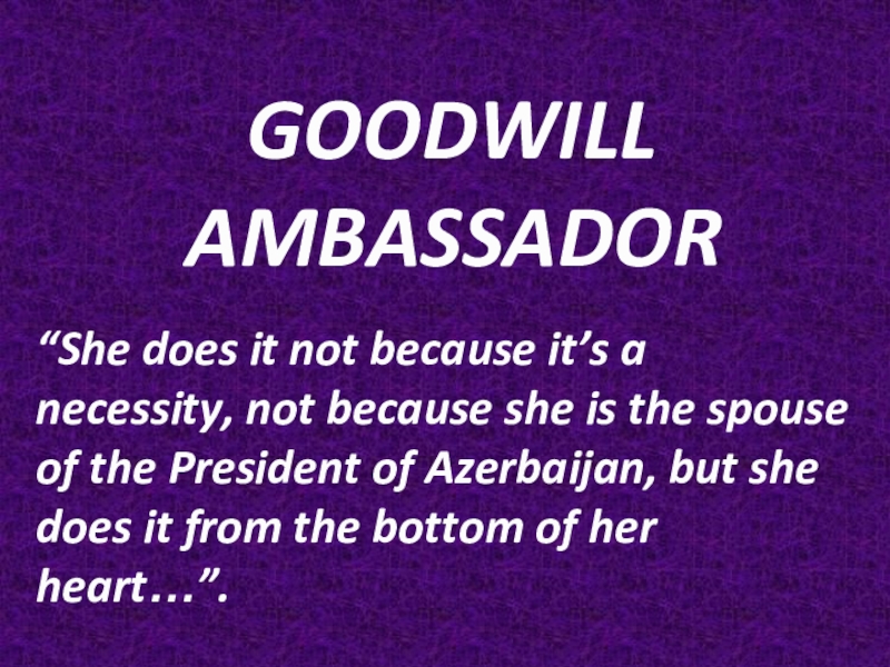 because it’s a necessity, not because she is the spouse of the President of Azerbaijan, but she does it from the bottom of her heart…”.