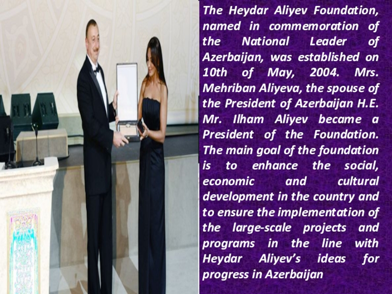 Слайд 12The Heydar Aliyev Foundation, named in commemoration of the National Leader