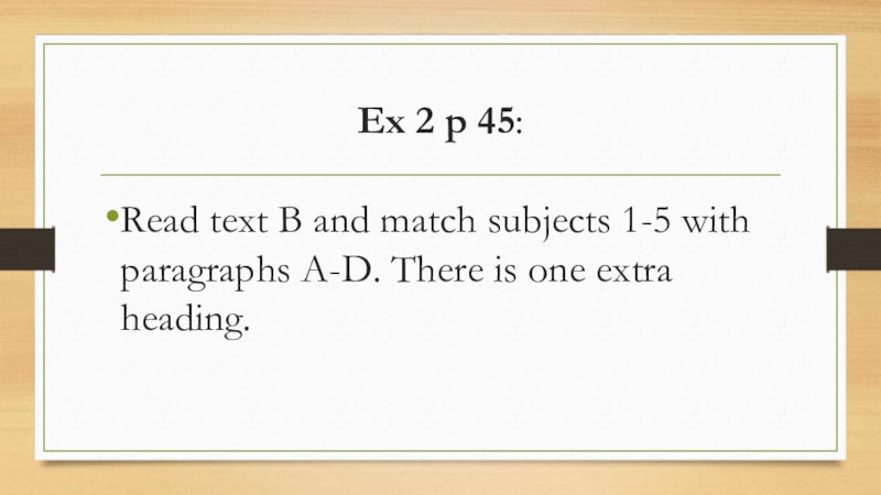 Ex 2 p 45:Read text В and match subjects 1-5 with paragraphs A-D. There is one extra